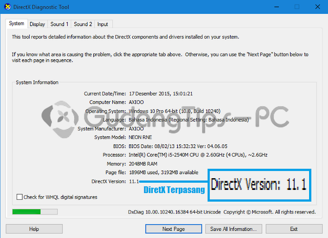 Dan situlah cara mengetahui DirectX yang terpasang pada Windows anda. DirectX version.